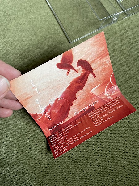 The Night Before is one of those rare concise records with a sound so contained, a sonic universe so immersive that as a listener you are simply dropped into it and left there to have your experience. There's the lilting of Hazel Briar’s voice, the shifting of chords, the plucking of keys and all of their cohesive reverberations: 8 songs in 28 minutes, a chance to drift into the treetops awhile.