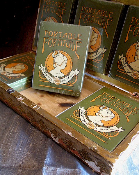 Portable Fortitude is a stunning deck of cards, unlike any other, by artist and astrologer Corina Dross. Designed with the flexibility to be anything you want them to be, from a smartly-designed poker deck to talismans for your altar. Used for everything from tarot (and other forms of cartomancy) to bicycle spokecards to writing and drawing prompts.