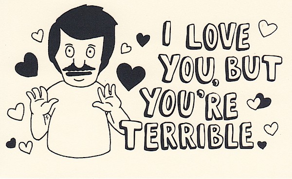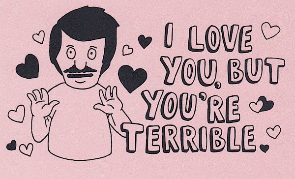An anytime valentine for that very special someone. (Or just, you know, your friendly neighborhood Bob's Burgers fan.)