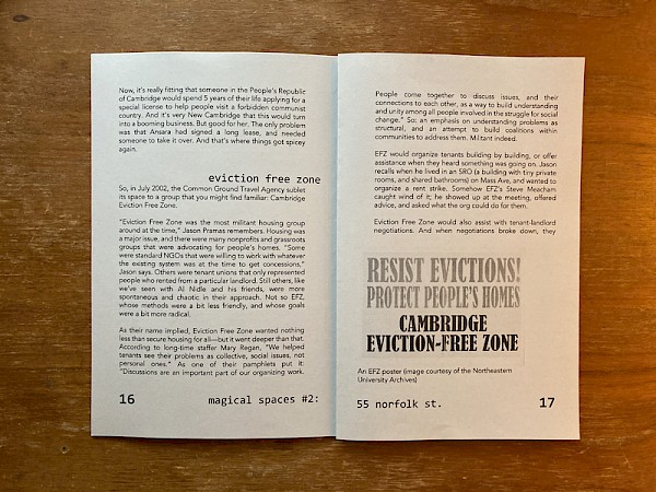 From Tim Devin's Magical Spaces series, 55 Norfolk St. looks at the magical past of one shopfront in Cambridge, Massachusetts. What was a small grocery store for the first half of the 20th century became a home for arts collectives, tenants' rights organizations, performances spaces, independent galleries, and a politically-radical player-piano-busker known as Piano Dave. It's been called the Mobius Artists Group, Eviction Free Zone, Meme, 55 Norfolk, among other names, and this zine records all of those histories.