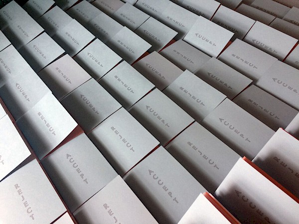Hand-sewn and hand-numbered. 44 pages, quarter-size.