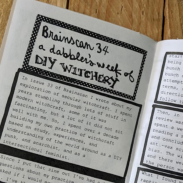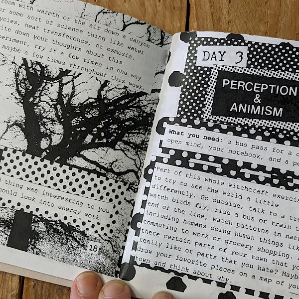 Within: cleaning-as-cleansing, everyday altars, grounding and centering, perception and animism, correspondences, sigils, spells, divination, and more. An open and accessible zine that thinks about witchcraft in a way not often presented in print.