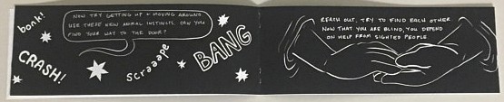 Empathy Exercise places the classroom exercise of putting a blindfold on to imagine being blind against the daily reality of being blind. Through M. Sabine Rear's stunning comic panels, the juxtaposition points out both the limitations of the exercise and the false narratives it perpetuates.