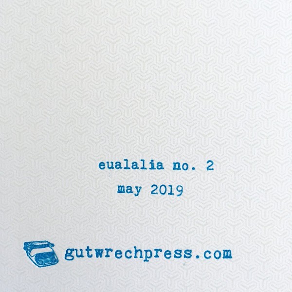 Letterpressed cover, risographed interiors blue, hand-bound. 16 pages, quarter-size.