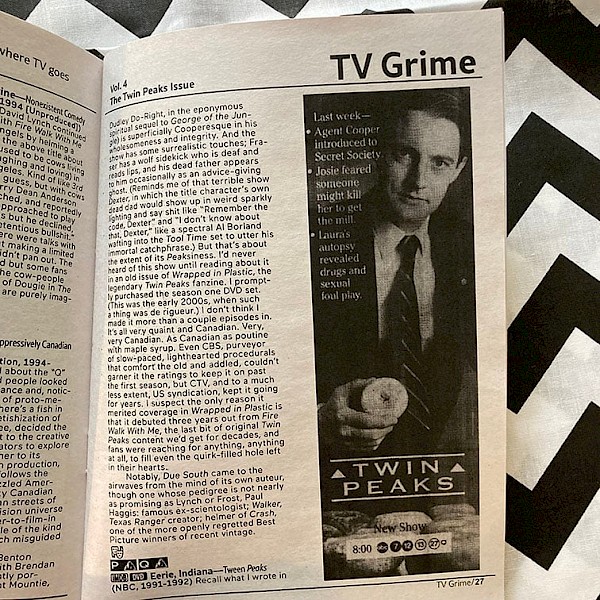 The brilliant and wild TV Grime is back again, this time with a whole issue dedicated to the beautifully strange cultural phenomenon of Twin Peaks and its lasting influence. Alongside rare vintage ads and "TV Grime Jr." games, TV Grime: The Twin Peaks Issue is an in-depth exploration of every series that followed, was inspired by, or is loosely related to Peaks, laid out in TV Guide's classic format.