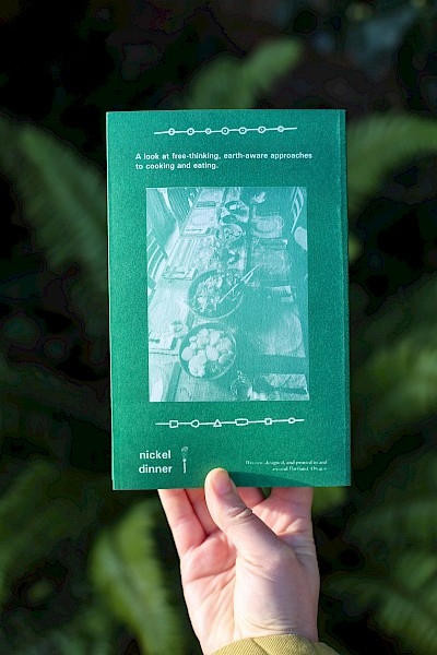 312 pages, trade paperback. Offset printed (spot color, all green) and bound in Portland, Oregon by Charles Overbeck of Eberhardt Press. Limited printing. Published by Nickel Dinner, an imprint of Two Plum Press.