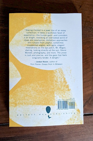From the publisher: "As a child, Joshua James Amberson was diagnosed with pseudoxanthoma elasticum, a rare genetic condition that may eventually lead to sightlessness. 'In my own mild way,' his book opens, 'I like to obsess,' and what follows is a relentlessly curious series of detours through oft-ignored aspects of vision and vision loss. Deftly weaving together such disparate subjects as Bette Davis’s career, the daily challenges of eye contact, and his own decade-long saga of periodic eye injections, Amberson digs deeply into the physical and existential consequences of living with such uncertainty. Staring Contest is wise, generous, and—given the subject matter—surprisingly funny."