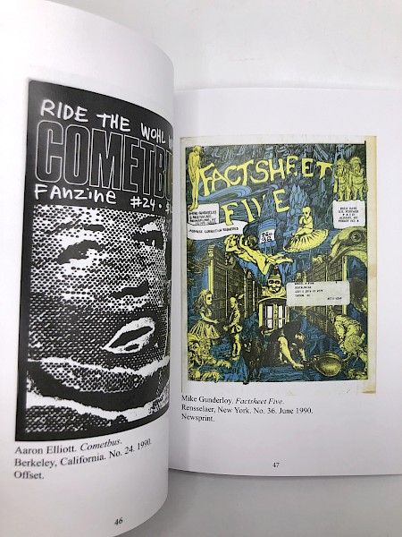 From the publisher: "Zinelandia: Cover Art from the Factsheet Five Era (1982-1998), traces the development of zine cover illustration through a transformative period when self-publishing flourished under the influence of the review publication, Factsheet Five. Edited first by Mike Gunderloy (1982-1991) and later by R. Seth Friedman (1993-1998), the magazine nurtured a vast creative community through mutual exchange, providing a platform for independent voices and radical self-expression. This work attempts to champion Factsheet Five’s historical importance on the cultural landscape of its time. Examining the covers in this collection, we witness the evolution of zine culture from the early years of stolen office photocopy to laser printing at home. The covers provide a panoramic view of zine culture at the twilight of the Twentieth Century—its art, concerns, creative spirit and clamor for community. Drawn from the collection of the author, Zinelandia is sourced from fifteen countries, their cover art breadcrumbs through the transitional time they traversed."