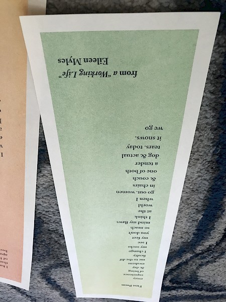 A set of poetry broadsides from Eileen Myles, Alice Notley, and Brandon Shimoda. Curated by Portland press and spoken-word label Fonograf Editions.