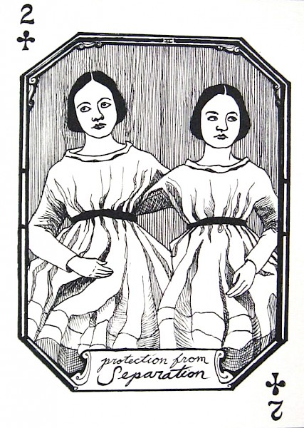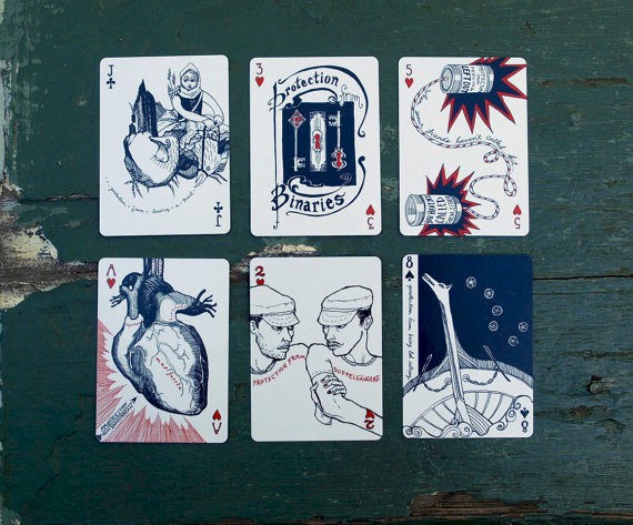 "For uses both serious and frivolous: 54 illustrated playing cards, each imbued with the power to protect you from some common calamity."