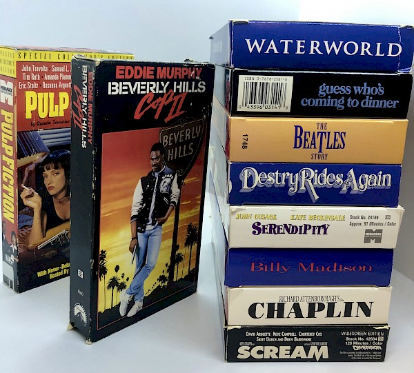 5 VHS tapes for only $10! Each grab bag contains a fun mix of '80s and '90s comedies, silly novelties, over-the-top action films, rom-coms, cult classics, Golden Age Hollywood blockbusters, and more.