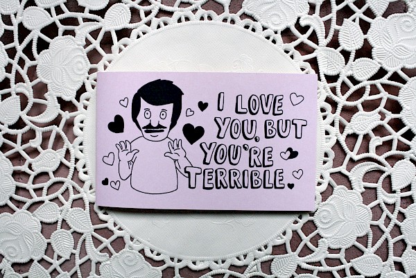 An anytime valentine for that very special someone. (Or just, you know, your friendly neighborhood Bob's Burgers fan.)