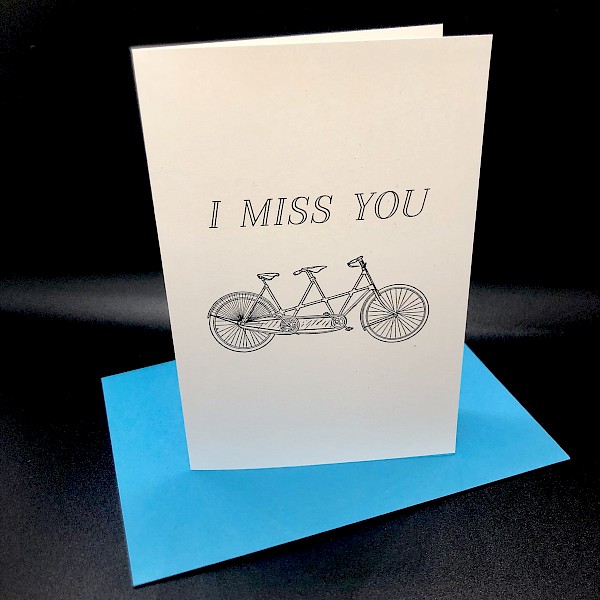 4” x 6” folded card, blank inside, professionally printed at Community Printers on high-quality recycled 80 lb. card stock, includes blue size-A6 envelope.