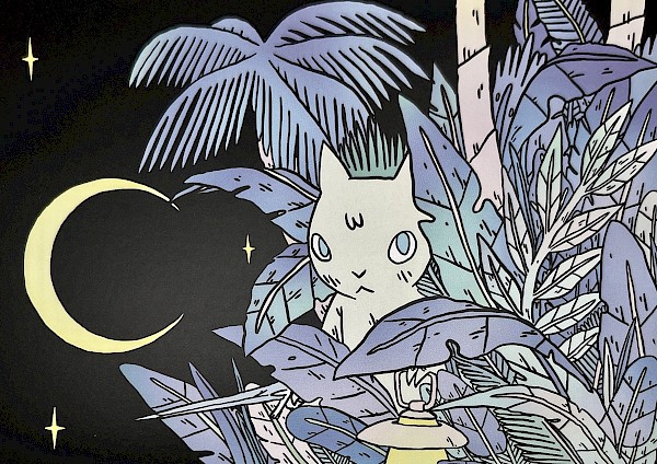 A cat, on a journey.