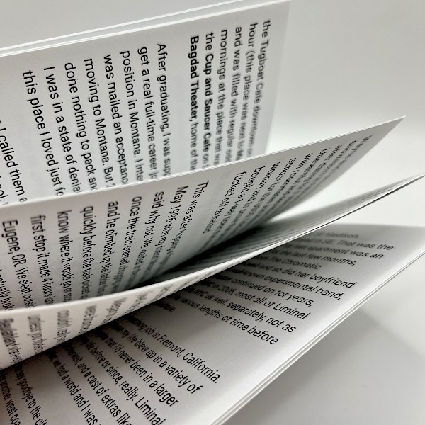 An early 20-something New Yorker moves to Portland, Oregon in 1994, never having been there, knowing nothing about it. This is a personal zine in snapshots, moments of joy, near-constant traveling and returning.