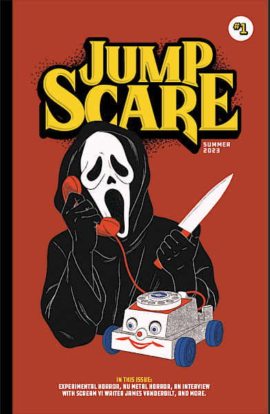 The first issue Jump Scare is a collection of thoughtful, horror-related delights. There's an interview with Scream VI writer/producer James Vanderbilt, a look into how experimental horror is making its way into major theaters, the nu metal horror canon of the late '90s and early '00s, a horror short story, reviews, cryptid reports, and more.