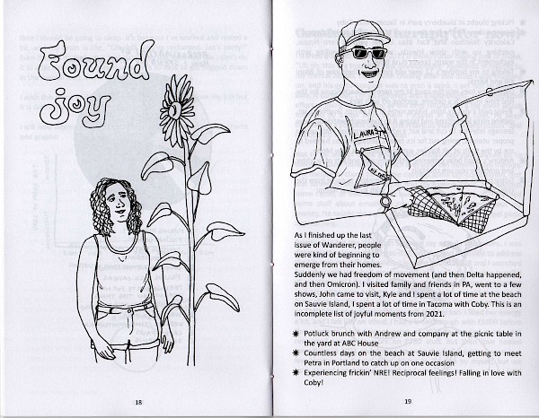The new issue of Wanderer digs into "conquering fears, healing, polyamory, & gender feelings." There are adventures in Olympia, Tacoma, Portland, the Northwestern woods, and beyond. There's a very relatable piece about being a full-time working artist and how the business part begins to overshadow the art. Also a look at the first year of their great zine How to Support Your Non-Binary Family Member being in existence. So much more.