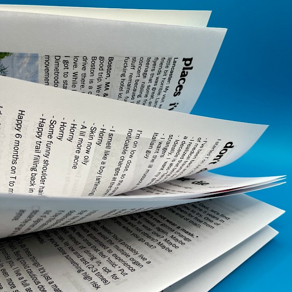 The latest issue of Wanderer covers 2024/2025 joys and anxieties, celebrations and rants. Within: planning DIY shows, taking hormones, organizing around COVID safety five years on, building a little free zine library, working with DIY venues, and entering their slut era.